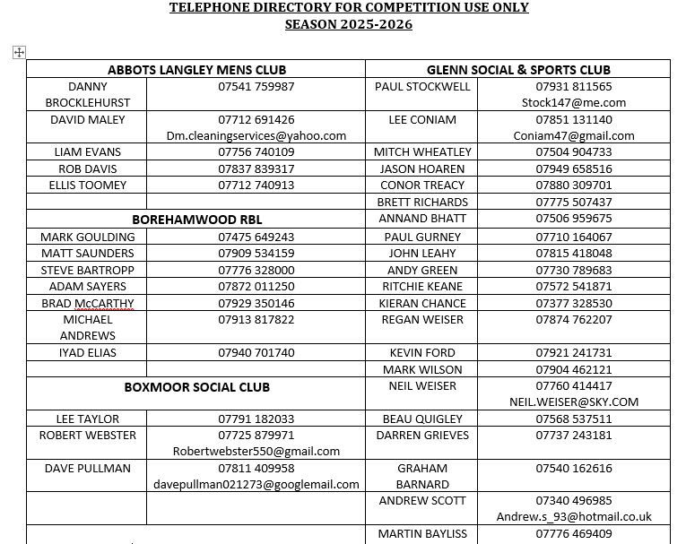 WATFORD & DISTRICT BILLIARDS AND SNOOKER LEAGUE